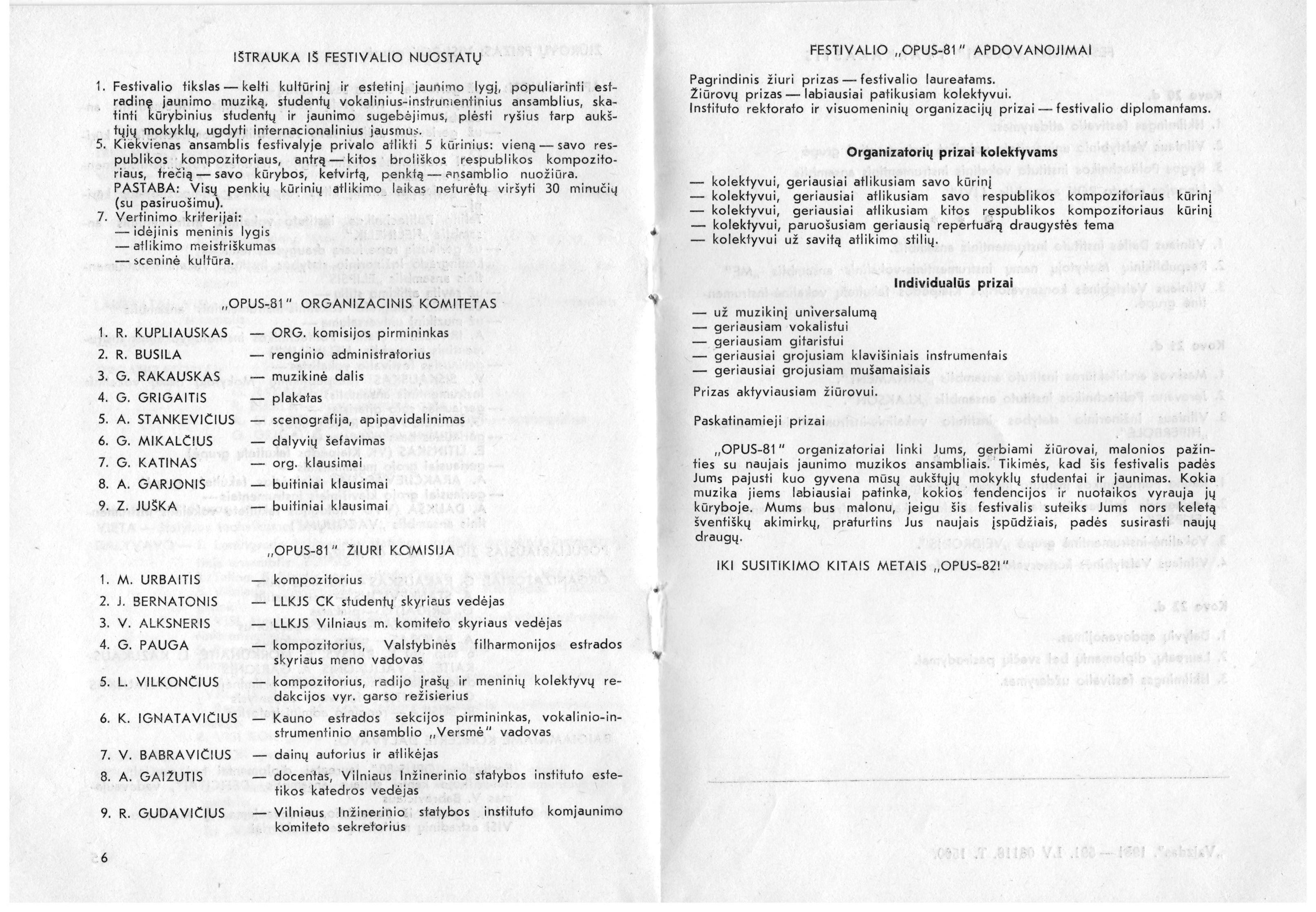 Organizatoriai: G.Rakauskas, R.Busila, A.Stankevičius, G.Muraška, G.Grigaitis, A. Bajoras,K.Balsys, E.Morkūnaitė, L.Kažukauskaitė, Ž.Valikonis,A. Garijonis